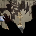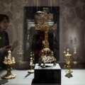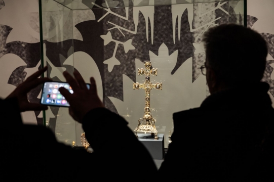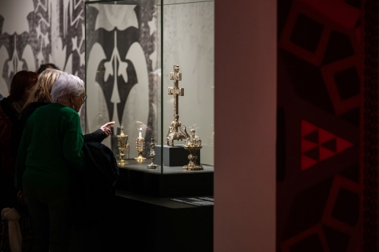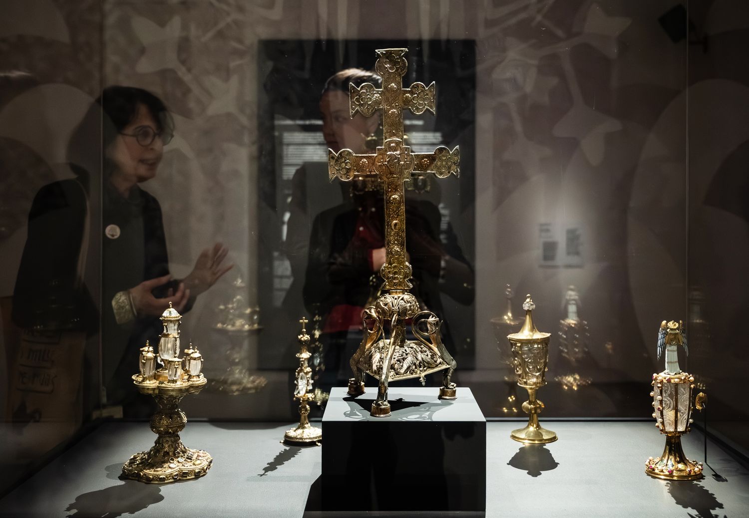 Parmi les pièces prêtées au Louvre-Lens, figurent deux pièces du Trésor d’Oignies, dont la croix-reliquaire de la Sainte Croix, dite ‘Croix byzantine’. Celle-ci s’accorde parfaitement avec les ambitions scientifiques du projet qui s’attache à mettre en valeur la diversité des transferts culturels et la manière dont les objets orientaux ont été intégrés, réinterprétés et magnifiés dans les trésors d’église européens. La seconde pièce, un vase-reliquaire dit ‘de Sainte Hedwige’, par son origine proche-orientale, sa rareté et son histoire documentée, témoigne des premiers échanges artistiques et spirituels entre Orient et Occident aux XIIe et XIIIe siècles.
