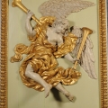 Avant de commencer le traitement, les œuvres ont été étudiées de manière approfondie. A l’origine, la polychromie imitait vraisemblablement le faux marbre. Il est apparu que les œuvres avaient été repeintes plusieurs fois au long des siècles. Les panneaux de support étant plus sujet aux variations climatologiques ont été repeints jusqu’à 10 fois. Les carnations qui ont moins subi les affres du temps n’ont été repeintes ‘que’ 5 fois. Toutes ses couches ne rendaient plus toute la qualité et la finesse du travail du sculpteur et empêchaient une bonne lisibilité de l’œuvre. Grace à leur traitement, les œuvres ont retrouvé tout leur éclat et une place de choix au sein dans l’ancien Palais des Princes-Evêques.
