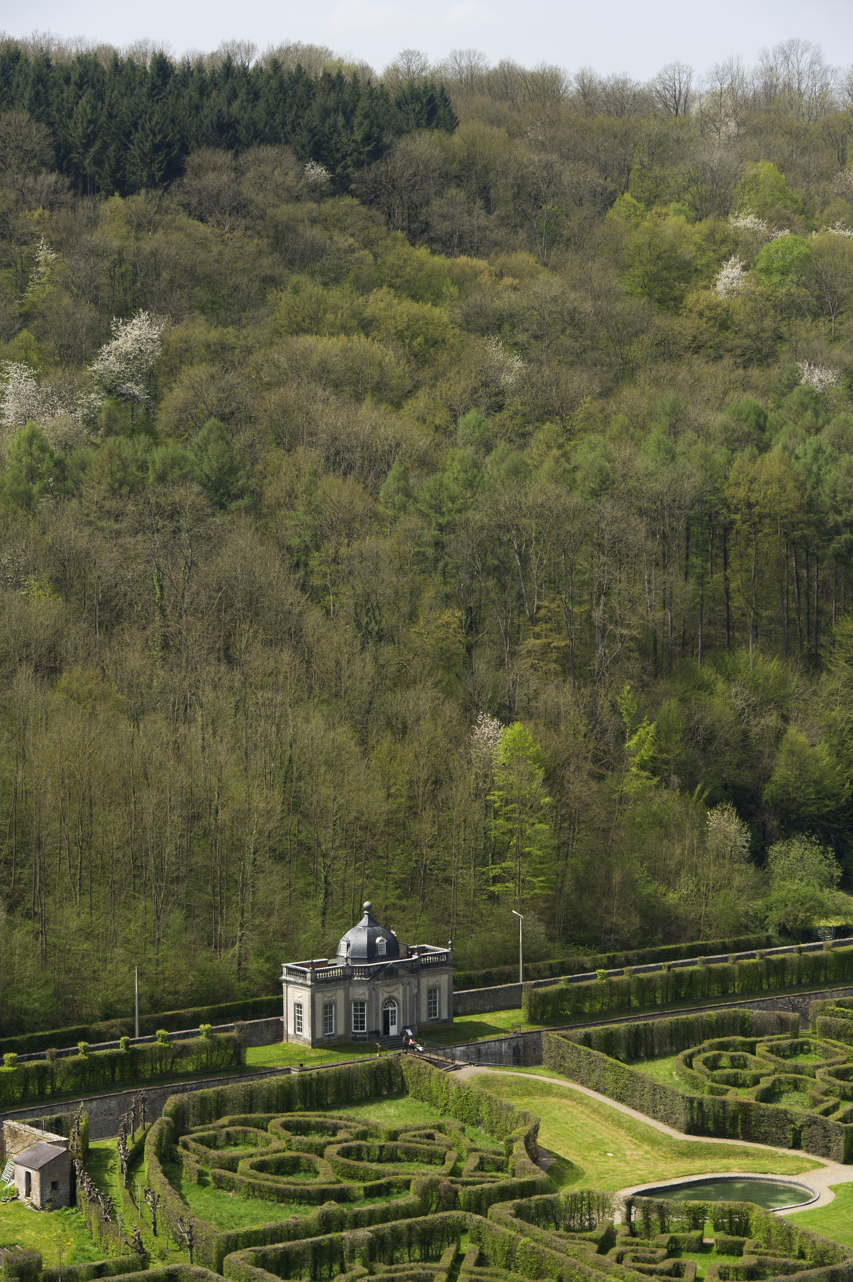 Le déboisement des flancs de la colline adjacente au domaine permettra le retour vers le pré-verger d’origine. Il offrira également un habitat favorable à deux espèces de chauves-souris en voie de disparition en Wallonie, ayant élu domicile dans les combles du château.