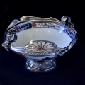 Cette coupe illustre magnifiquement bien l’assimilation qualitative du style rococo français dans les Pays-Bas autrichiens. Le motif élégant, orné de feuillages, de chrysanthèmes et de branches de pruniers qui décore la porcelaine Imari de couleurs dorée, rouge et bleue se fond merveilleusement dans les bordures en argent ciselé.
