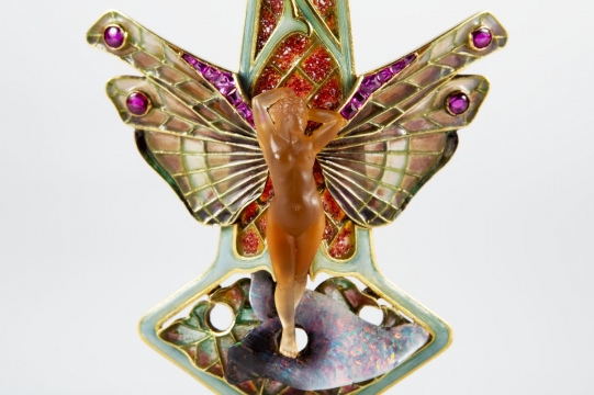 Or, émail, diamant, rubis, émeraude, carnéol, tourmaline, opale matrix et perle